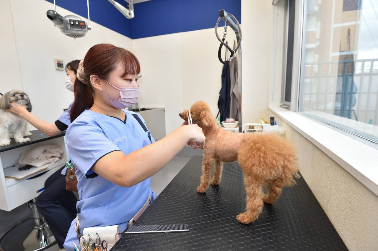 ドッグランが見渡すことができる綺麗なお部屋で快適なトリミングをご提供いたします。ペットの状態に合わせてシャンプーやコンディショナーを選択し、しっとりふわふわに仕上げてまいります。カットのご要望にもお応えし、丁寧なトリミングを実施しております。皮膚疾患を持つペットには獣医師が適切なシャンプーやクレンジング、保湿剤を選択し、治療的なシャンプーを行います。